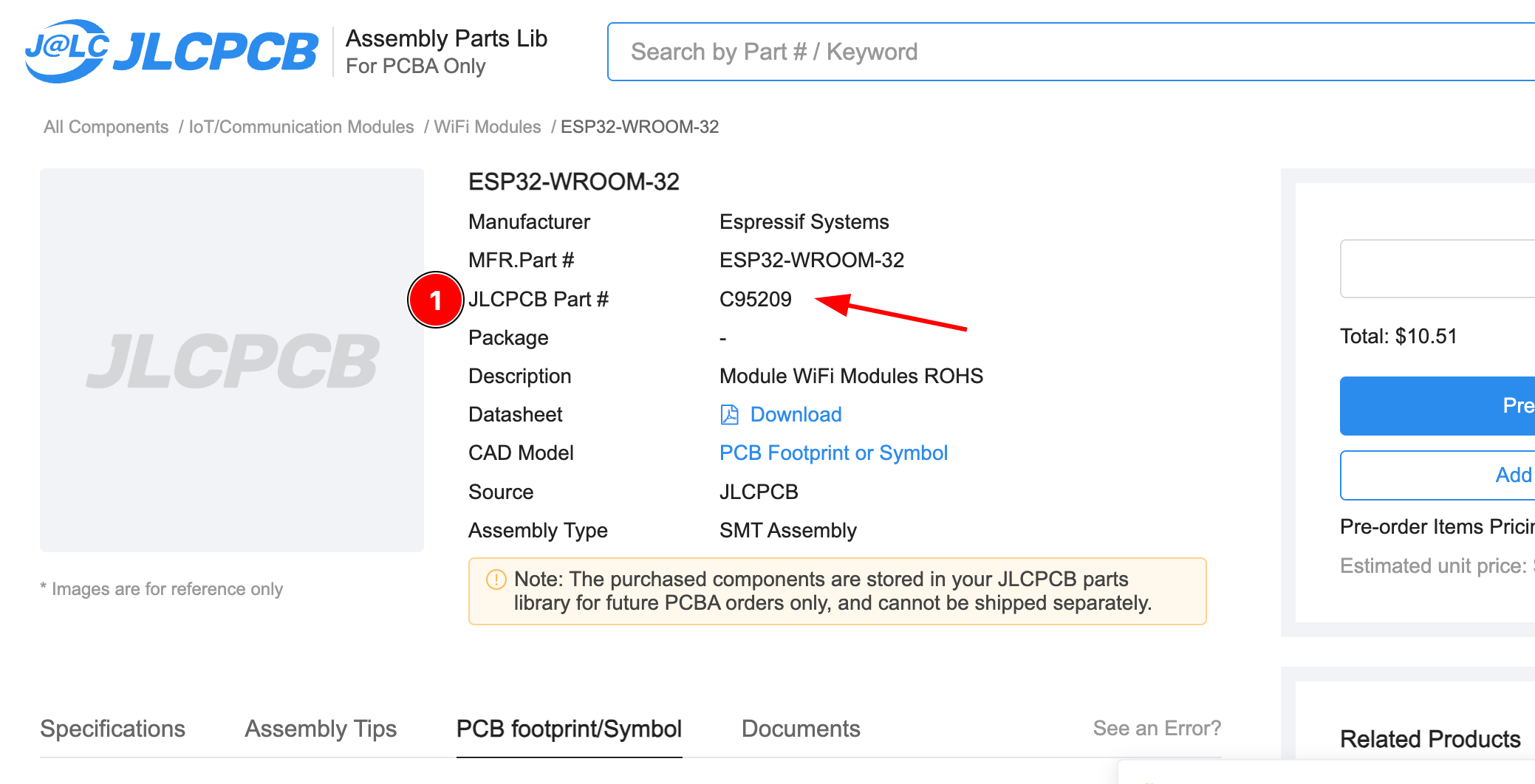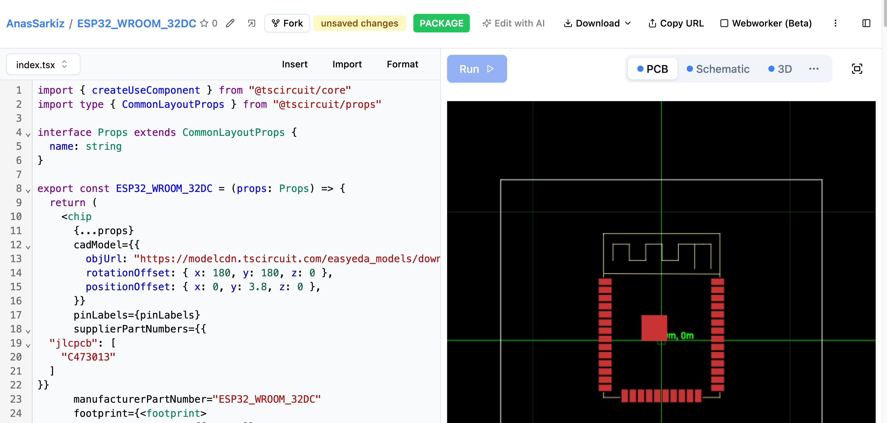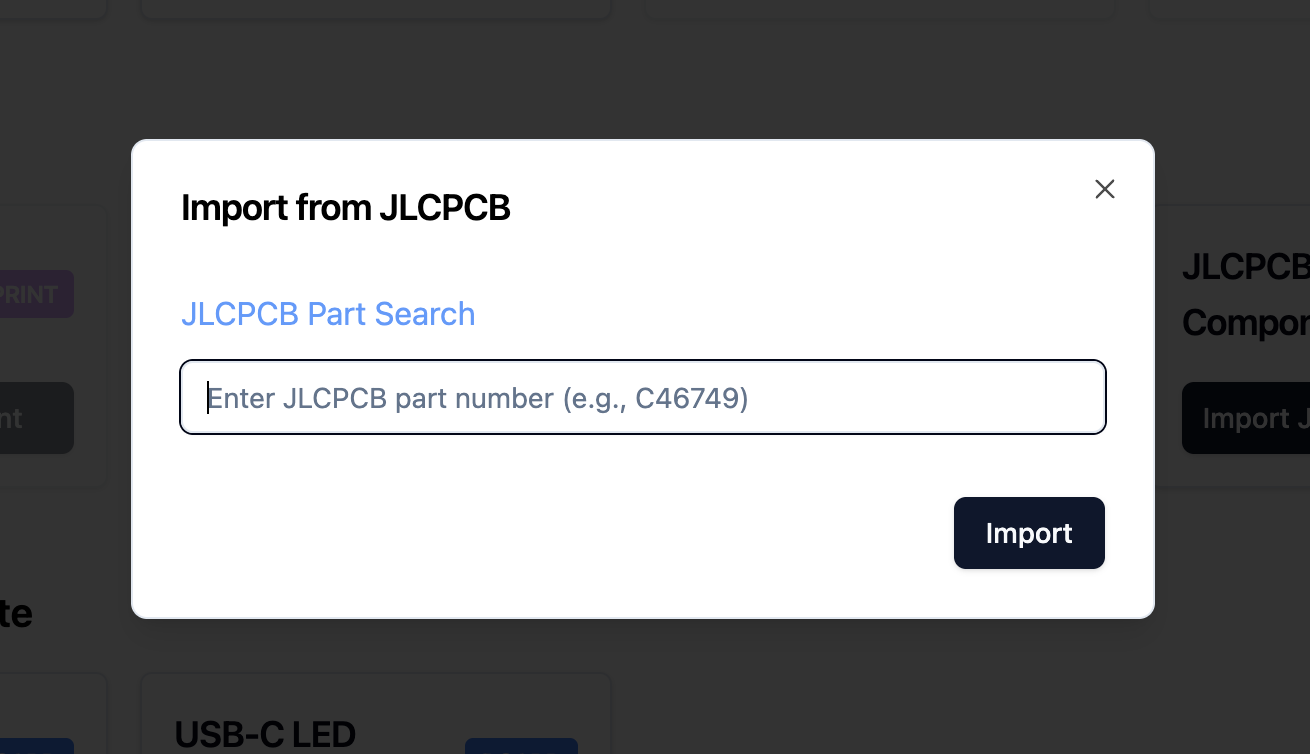 JLCPCB has a massive component catalog of 3d models and footprints. You can import components using either the web interface at tscircuit.com or through RunFrame.
